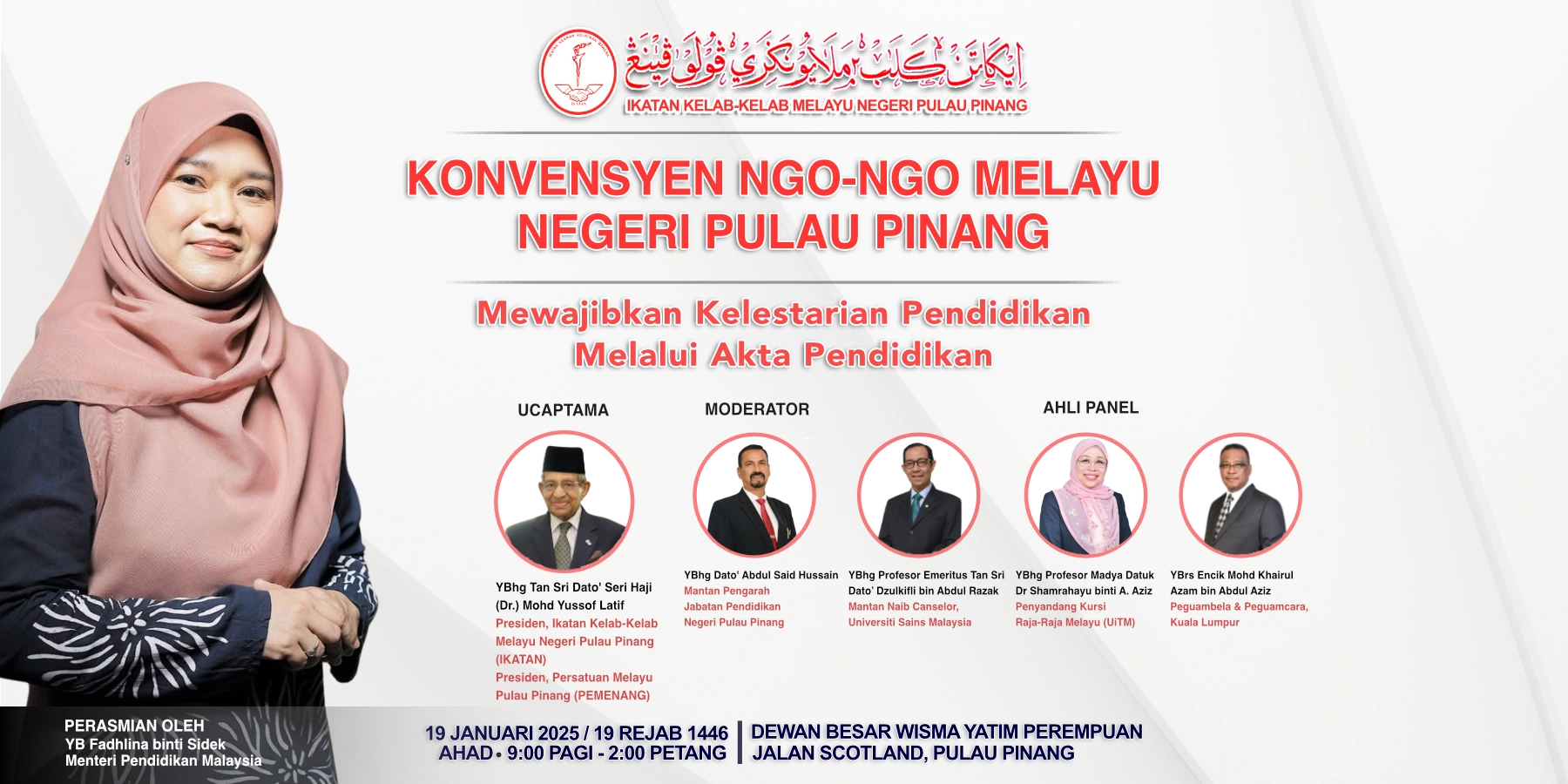 Tarikh : 16 April 2025 / 17 Syawal 1446 (Rabu) Masa : 8.00 Malam Tempat : Banquet Hall, Level 4, Sunshine Square, Bayan Baru, Pulau Pinang Anjuran : Persatuan Melayu Pulau Pinang (PEMENANG) Tetamu Kehormat : · Tuan Yang Terutama Tun Dato' Seri Utama [...]
