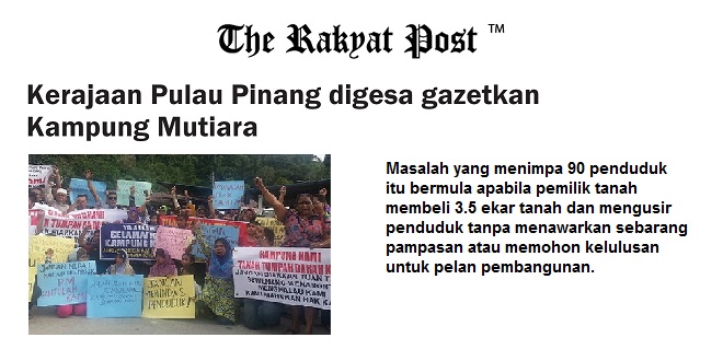 Kerajaan Pulau Pinang Digesa Gazetkan Kampoung Mutiara | The Rakyat Post (28 Ogos 2015)