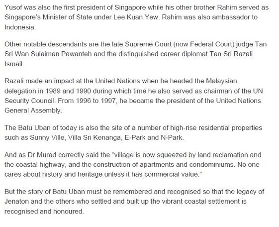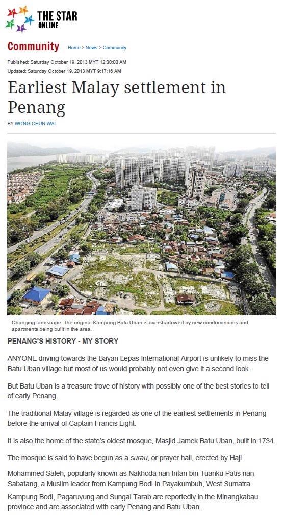 Artikel asal: http://www.thestar.com.my/News/Community/2013/10/19/Earliest-Malay-settlement-in-Penang-Founded-by-a-local-legend-Batu-Uban-boasts-the-oldest-mosque-in/