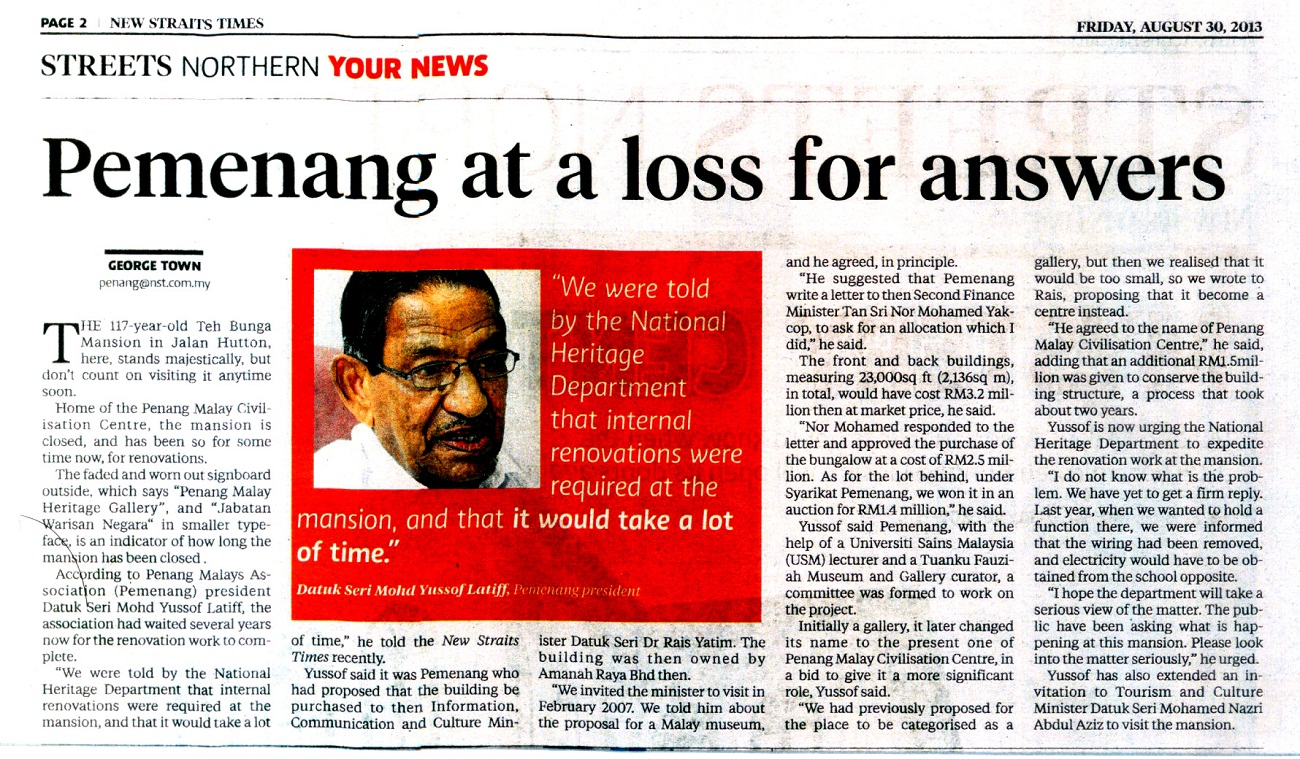 Pemenang at a Loss for Answers | New Straits Times (30 Ogos 2013)