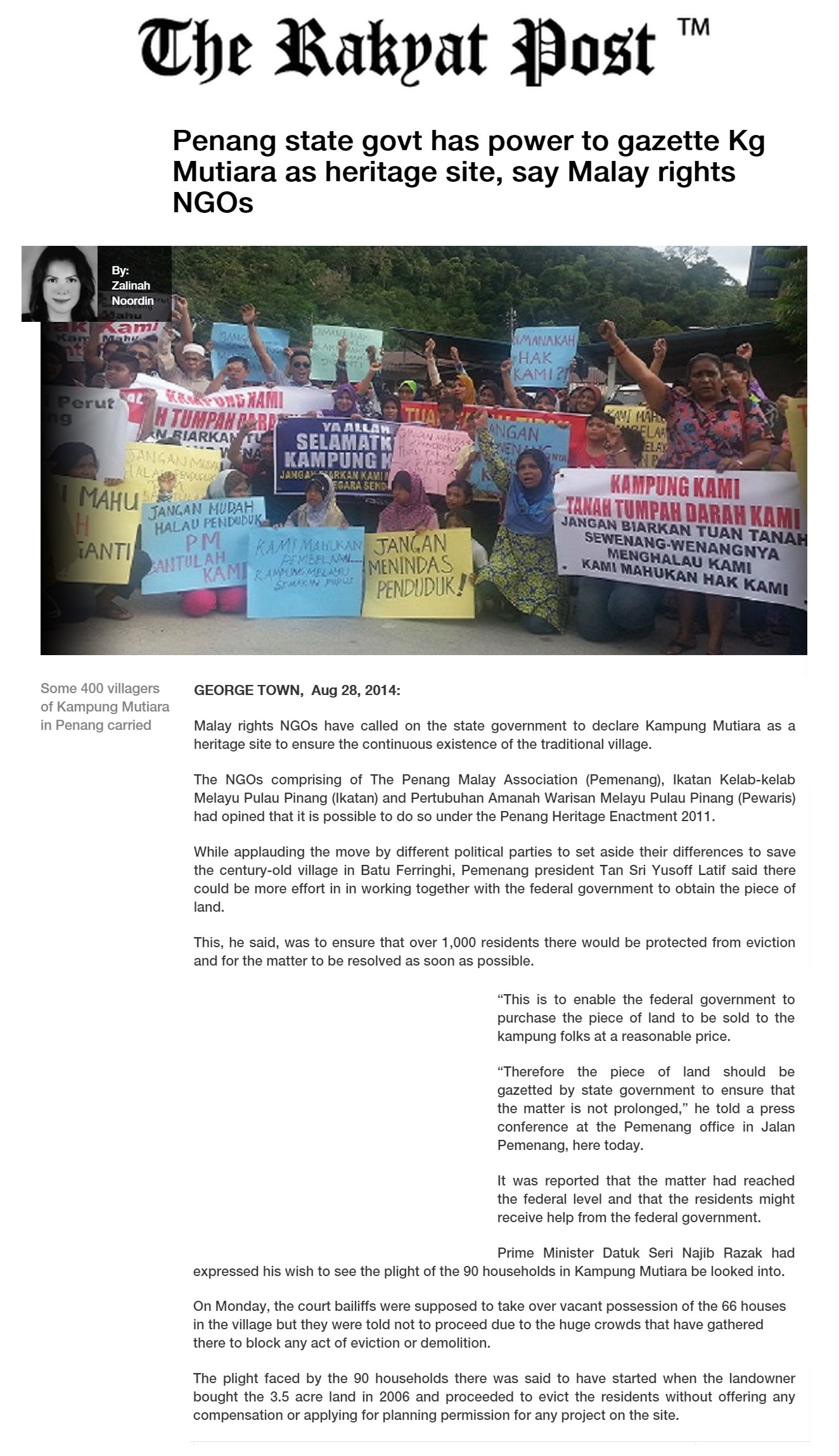 Penang state govt has power to gazette Kg Mutiara as heritage site, say Malay rights NGOs | The Rakyat Post